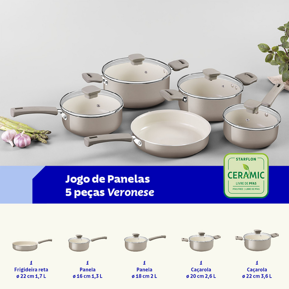 Revestimento Starflon Ceramic: Interior cerâmico livre de PFAS, garantindo segurança alimentar e alta durabilidade.