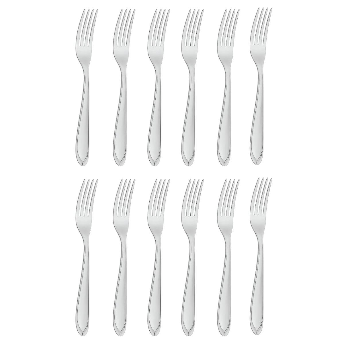 - Garfos com dentes polidos na parte interna, com formato apropriado para a boca e bordas arredondadas para proporcionar maior conforto no uso.