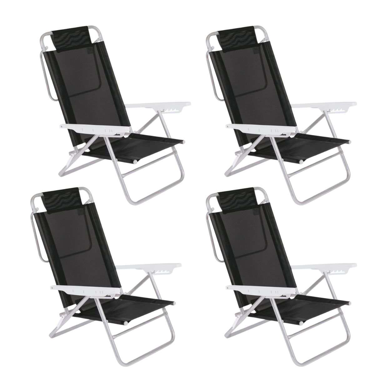 04 Cadeiras de Praia Reclináveis Summer 6 Posições Preto Mor