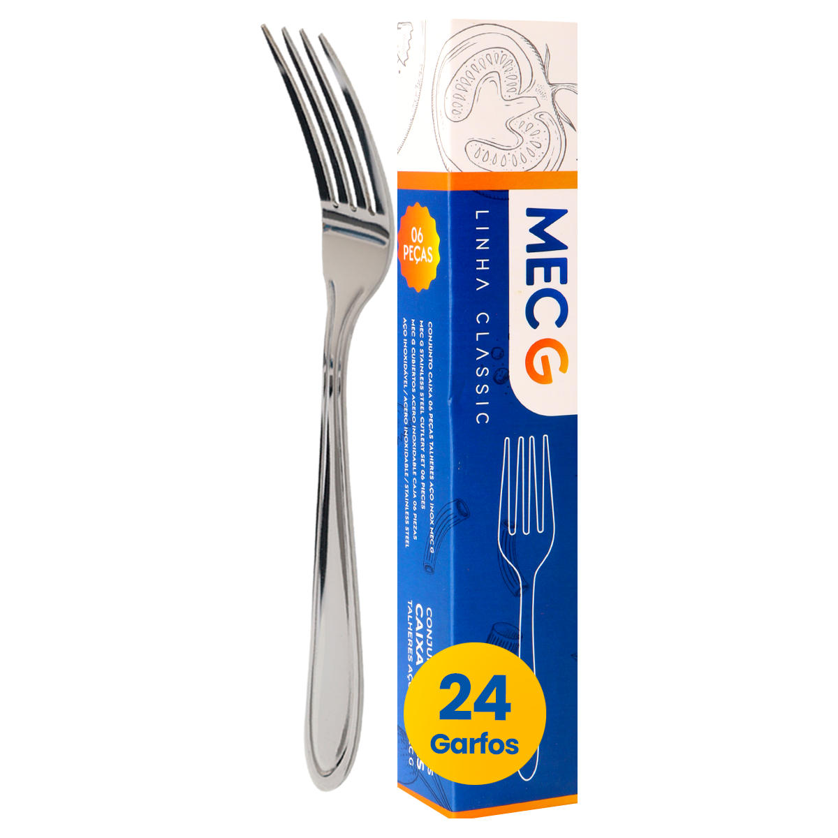 Os Garfos Classic são perfeitos para quem valoriza elegância e resistência. São indispensáveis para completar sua mesa com estilo. Transforme suas refeições em momentos ainda mais especiais!