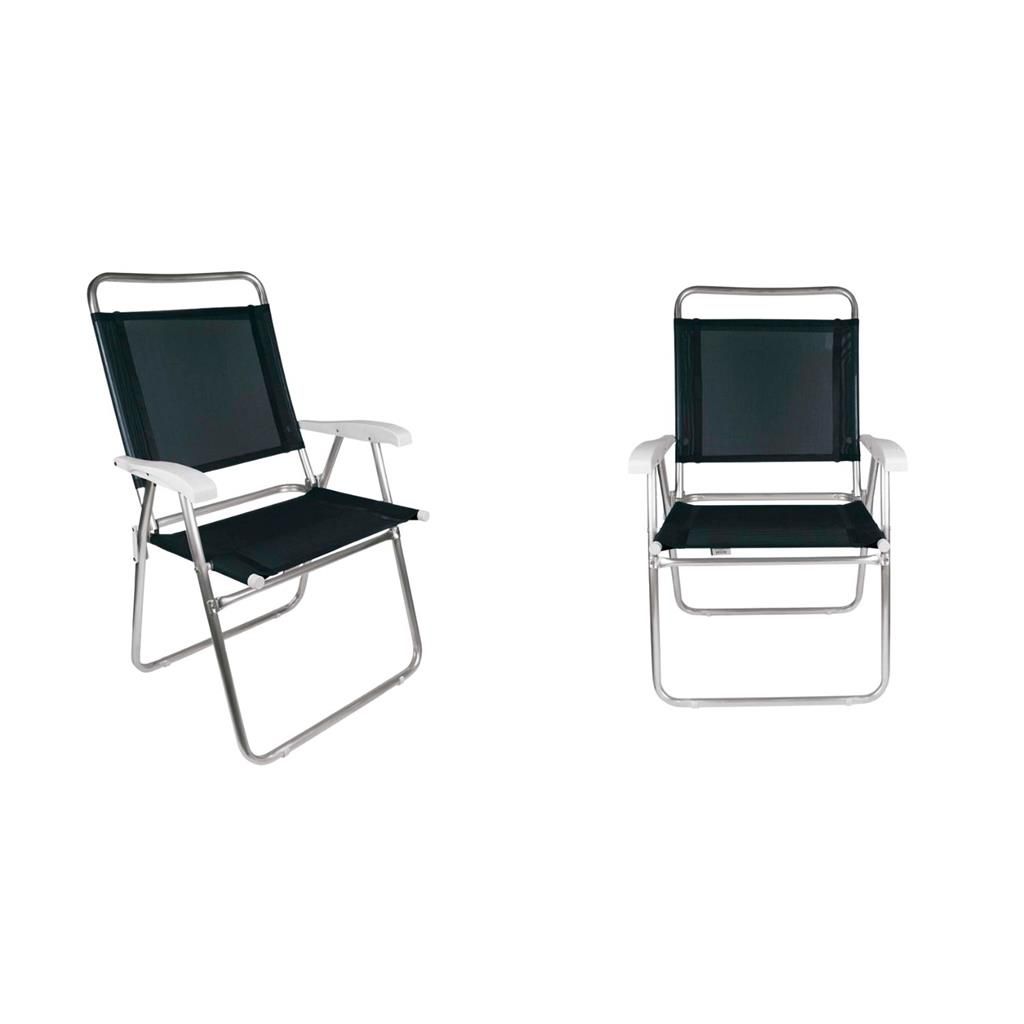 Kit 2 Cadeiras de Praia Master Plus Preta 120kg Mor