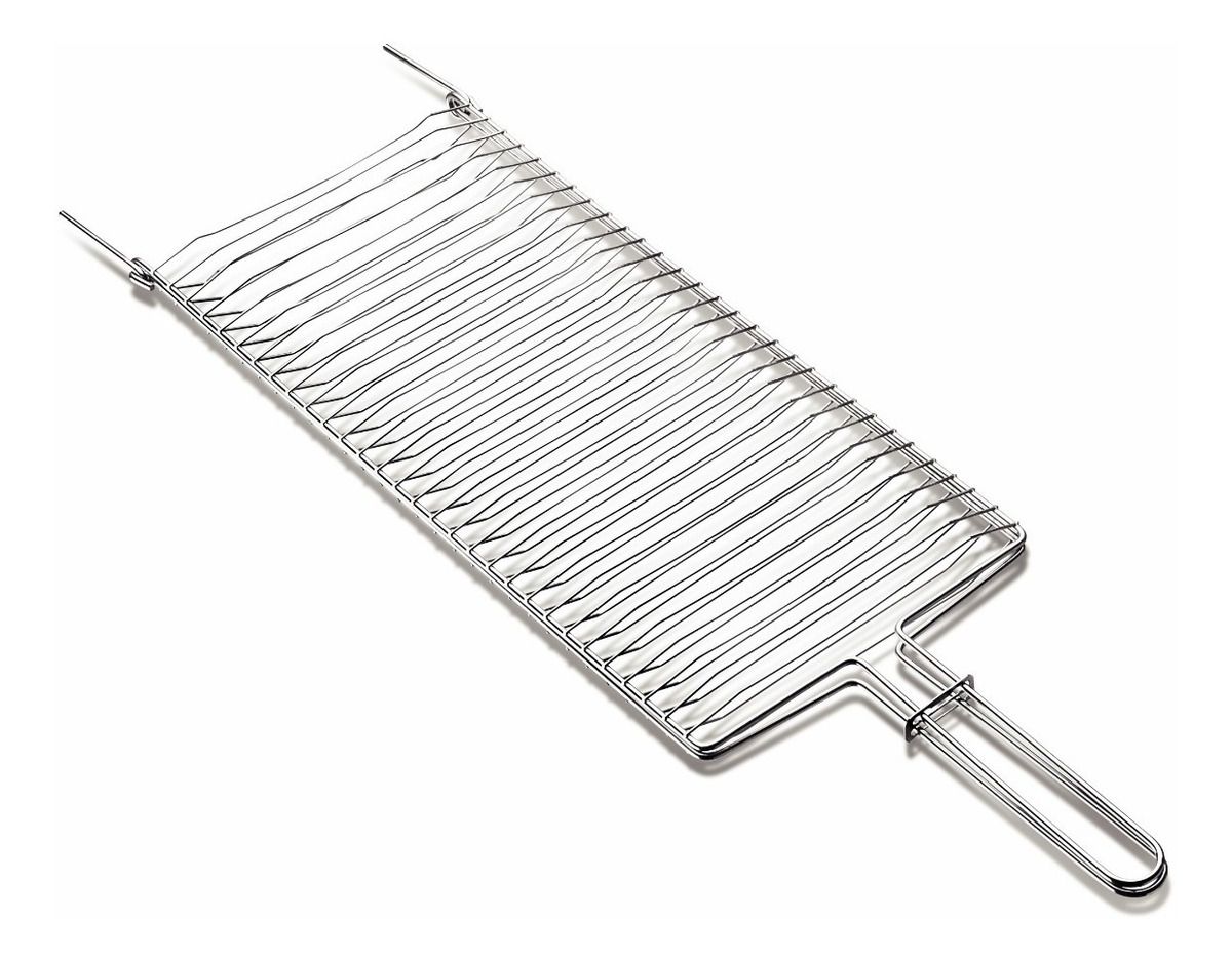 Fabricada em aço inox de alta durabilidade, a nossa grelha não só proporciona resistência, mas também um design elegante que vai impressionar seus convidados. E para garantir a segurança e facilidade de uso, ela conta com uma prática trava de fechamento, mantendo os alimentos no lugar e facilitando o manuseio.
