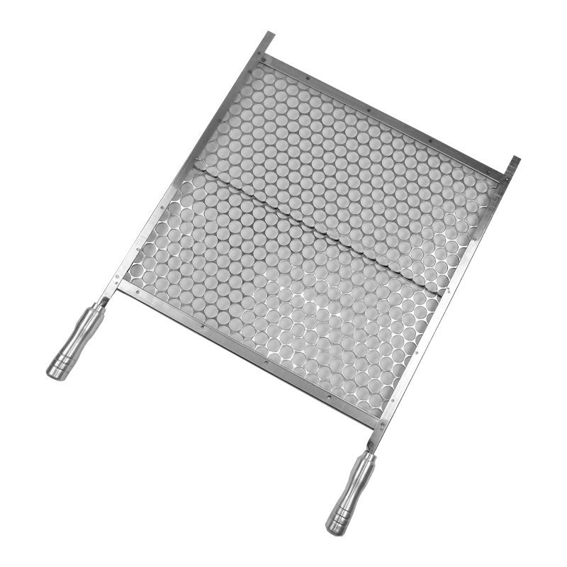A grelha em tela moeda de aço inoxidável 430, com espessura de 1,50 mm extremamente resistente e durável. Solda a ponto, por fusão.