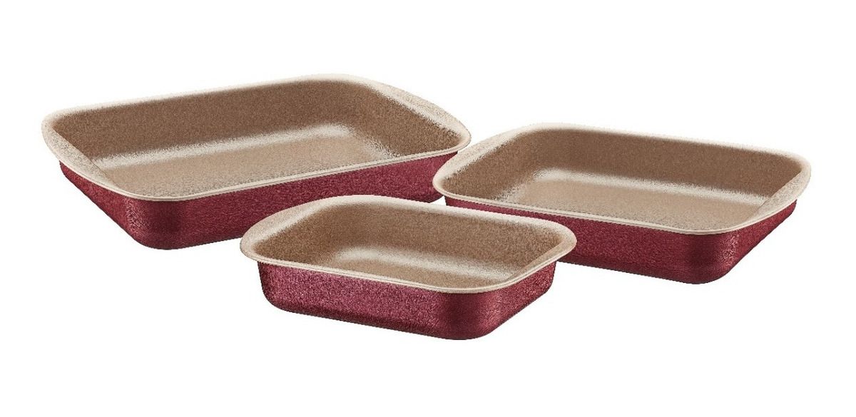 Suas receitas vão ganhar um ingrediente especial com o Jogo de Assadeiras Tramontina Brasil em Alumínio com Revestimento Antiaderente Vermelho 3 Peças. São três peças na charmosa cor vermelha que levam mais estilo e praticidade para sua cozinha. Produzidas em alumínio, possuem revestimento interno e externo em antiaderente Starflon Max, material que permite um cozimento mais uniforme e evita que o alimento grude. Retangulares, são versáteis e podem ser utilizadas em fornos a gás e elétricos. Além disso, podem ir à máquina de lavar louças. O jogo essencial para você equipar sua cozinha!
