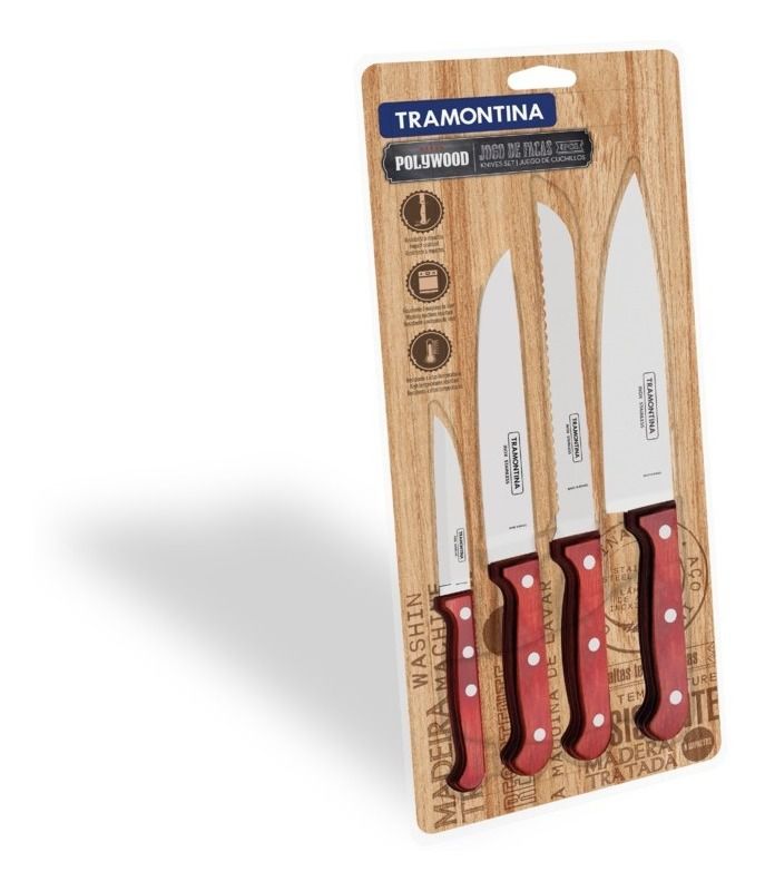 Nada melhor do que contar com o Jogo de Facas Tramontina Polywood com Lâminas em Aço Inox e Cabos de Madeira Vermelho 4 Peças da linha Polywood.
