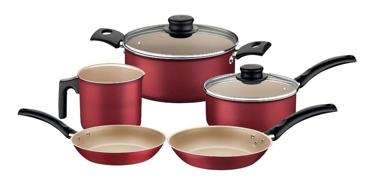 Com o jogo de panelas Tramontina Turim em alumínio com revestimento interno e externo em antiaderente Starflon Max vermelho 05 peças você terá os melhores itens para completar sua cozinha.